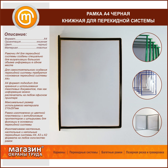 Рамка А4 черная книжная в Кашире купить