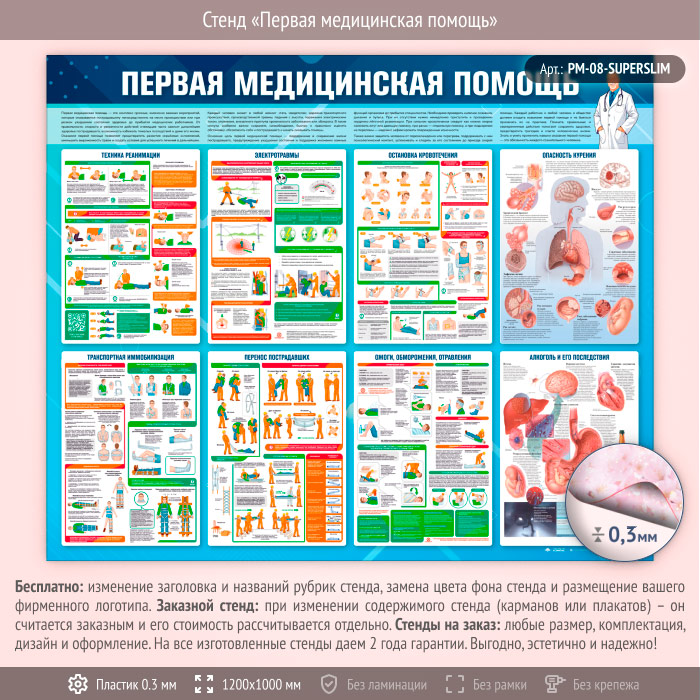 Стенд «Первая медицинская помощь» (PM-08-SUPERSLIM) в Кашире купить