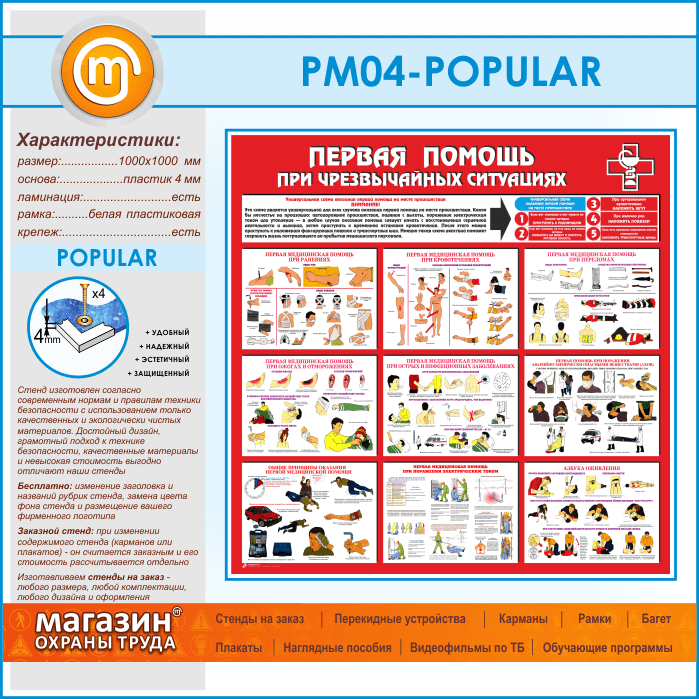 Стенд «Первая помощь при чрезвычайных ситуациях» (PM-04-POPULAR) в Кашире купить