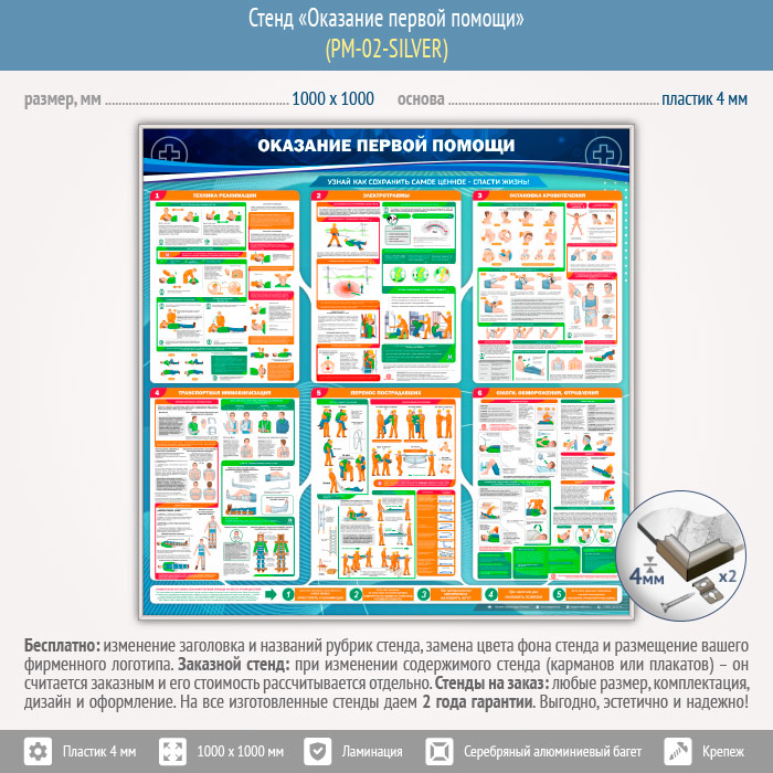 Стенд «Оказание первой помощи» (PM-02-SILVER) в Кашире купить