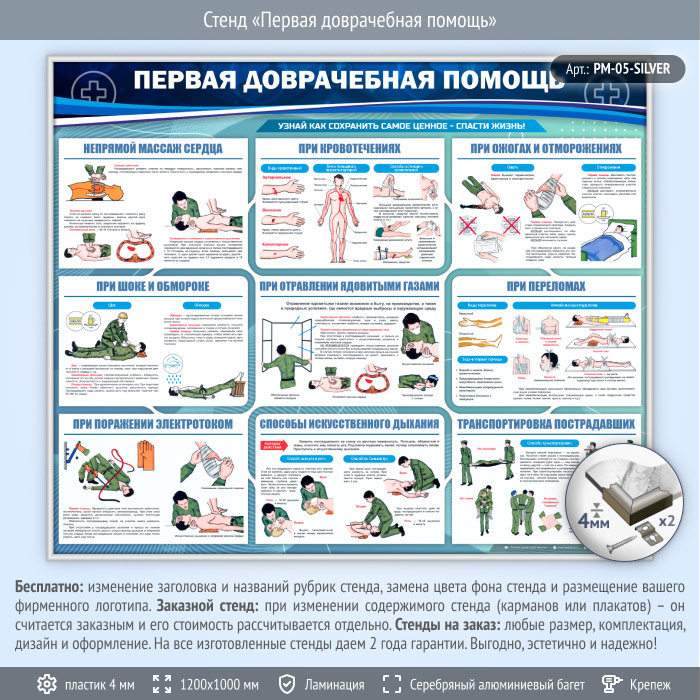 Стенд «Первая доврачебная помощь» (PM-05-SILVER) в Кашире купить