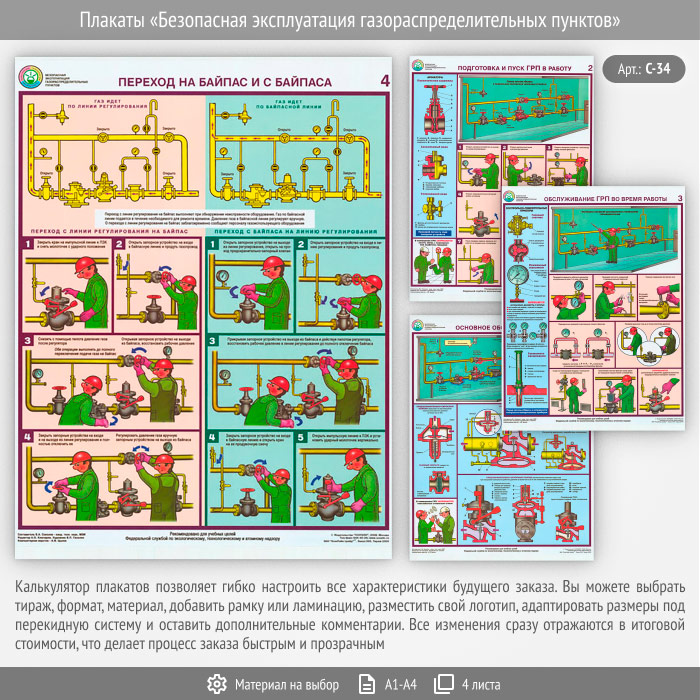 Комплект плакатов «Безопасная эксплуатация газораспределительных пунктов» из 4 листов – достойное качество и полезная информация по приемлемой цене