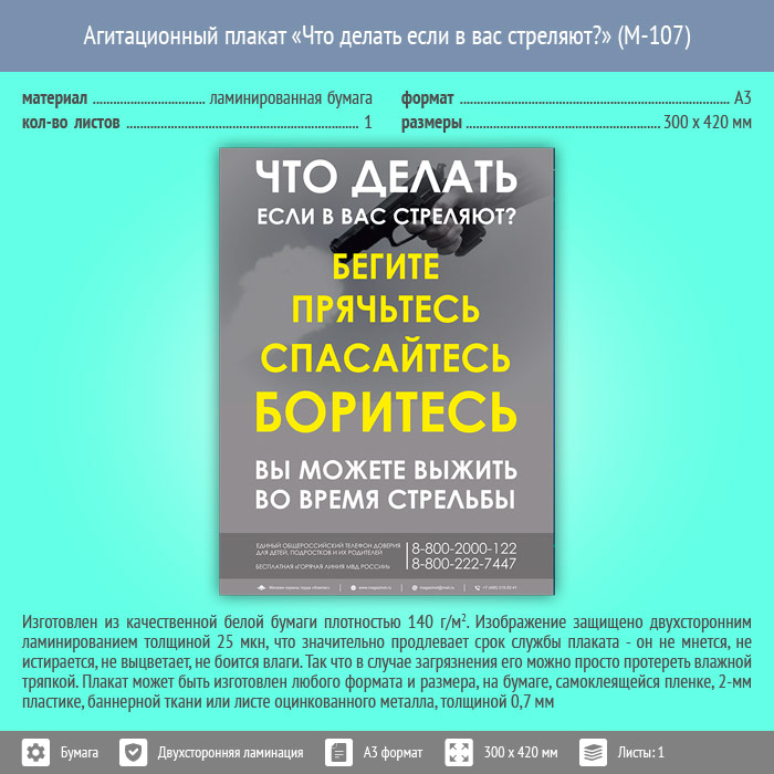 Плакат «Что делать если в вас стреляют?» (М-107, ламинированная бумага, А3, 1 лист) в Кашире купить