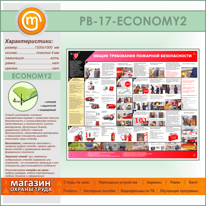 Стенд «Общие требования пожарной безопасности» (PB-17-ECONOMY2) в Кашире купить