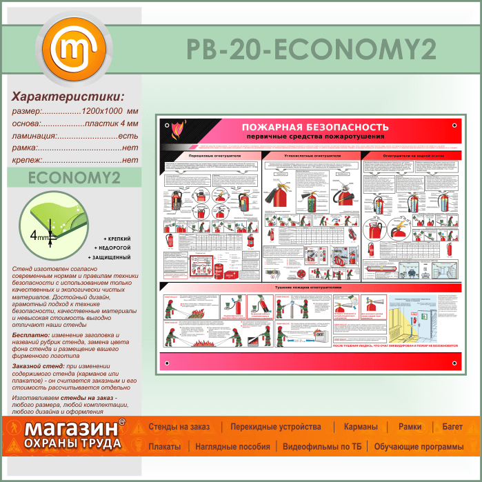 Стенд «Пожарная безопасность. Первичные средства пожаротушения» (PB-20-ECONOMY2) в Кашире купить