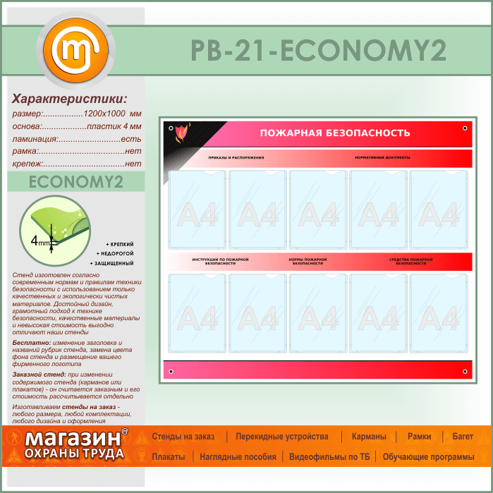 Стенд «Пожарная безопасность» с 10 карманами (PB-21-ECONOMY2) в Кашире купить