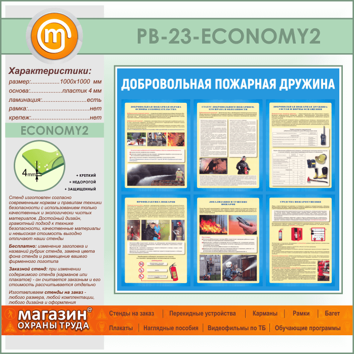 Стенд «Добровольная пожарная дружина» (PB-23-ECONOMY2) в Кашире купить