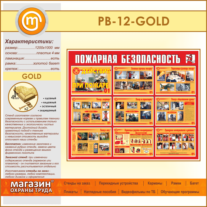 Стенд «Пожарная безопасность. Действия при пожаре» (PB-12-GOLD) в Кашире купить