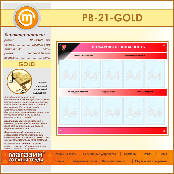 Стенд «Пожарная безопасность» с 10 карманами (PB-21-GOLD) в Кашире купить