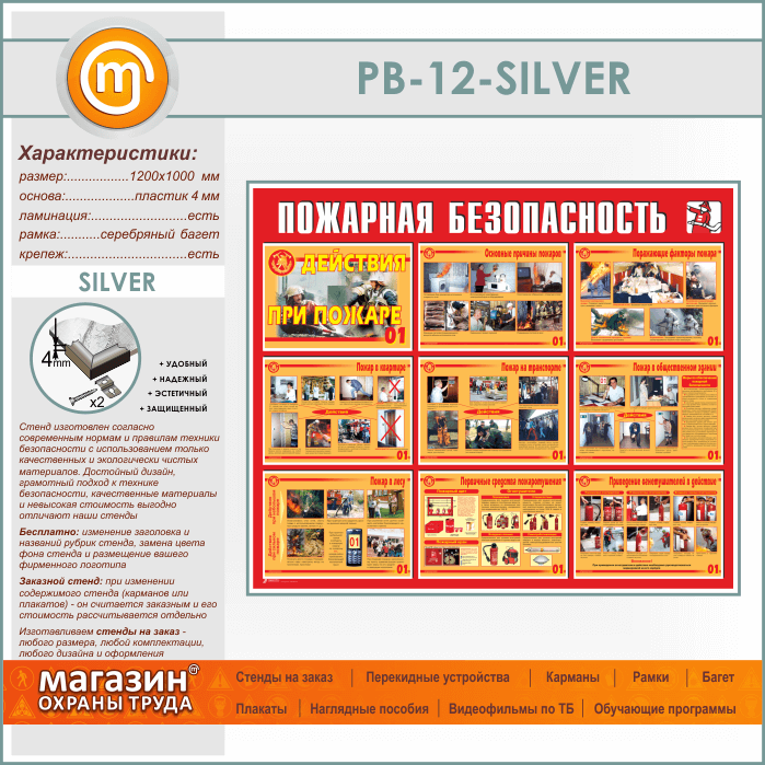 Стенд «Пожарная безопасность. Действия при пожаре» (PB-12-SILVER) в Кашире купить
