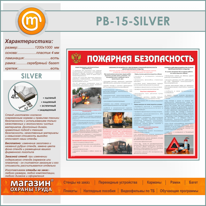 Стенд «Пожарная безопасность на автотранспорте» (PB-15-SILVER) в Кашире купить