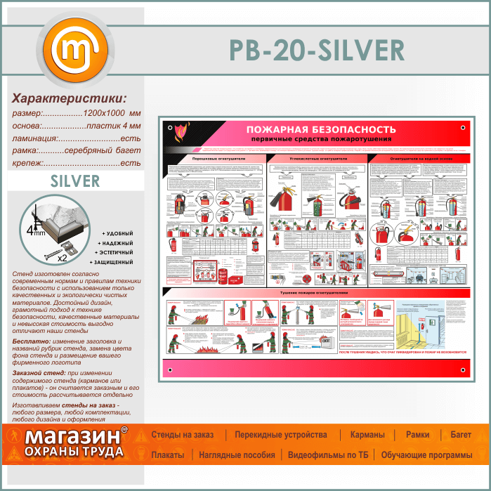 Стенд «Пожарная безопасность. Первичные средства пожаротушения» (PB-20-SILVER) в Кашире купить