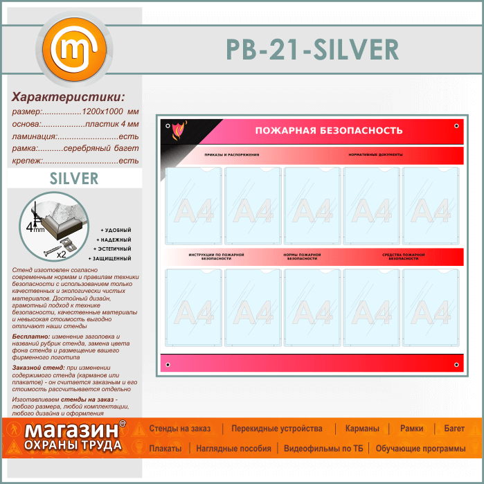 Стенд «Пожарная безопасность» с 10 карманами (PB-21-SILVER) в Кашире купить