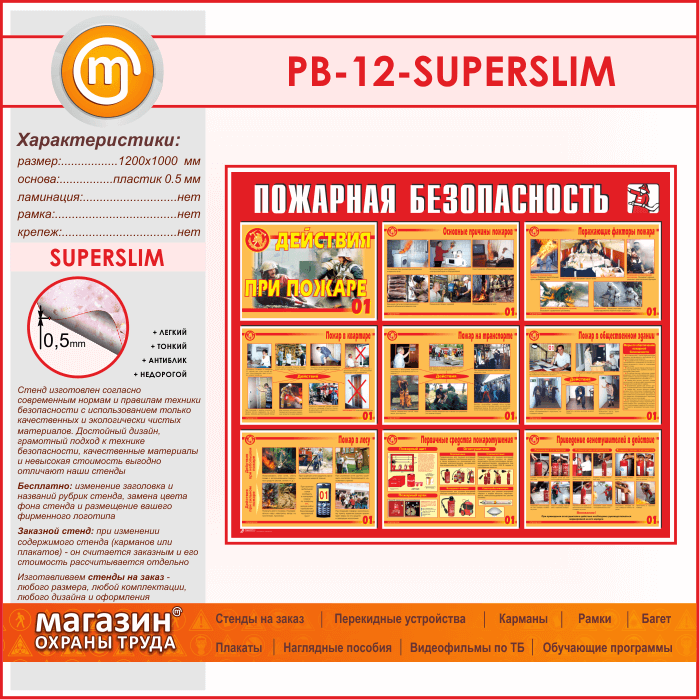 Стенд «Пожарная безопасность. Действия при пожаре» (PB-12-SUPERSLIM) в Кашире купить