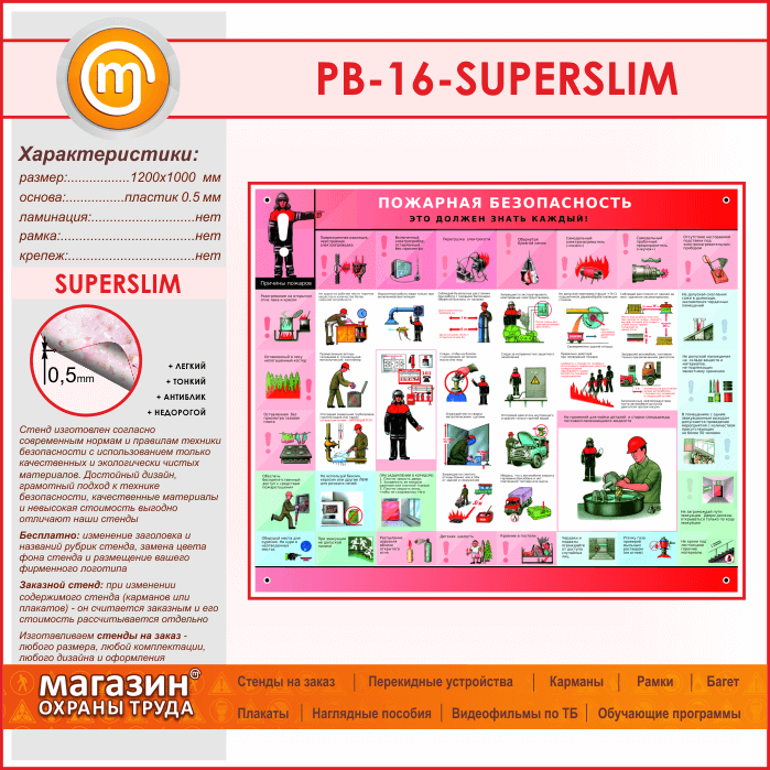 Стенд «Пожарная безопасность. Это должен знать каждый» (PB-16-SUPERSLIM) в Кашире купить