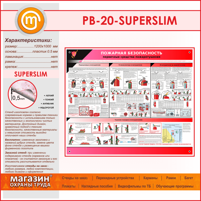 Стенд «Пожарная безопасность. Первичные средства пожаротушения» (PB-20-SUPERSLIM) в Кашире купить