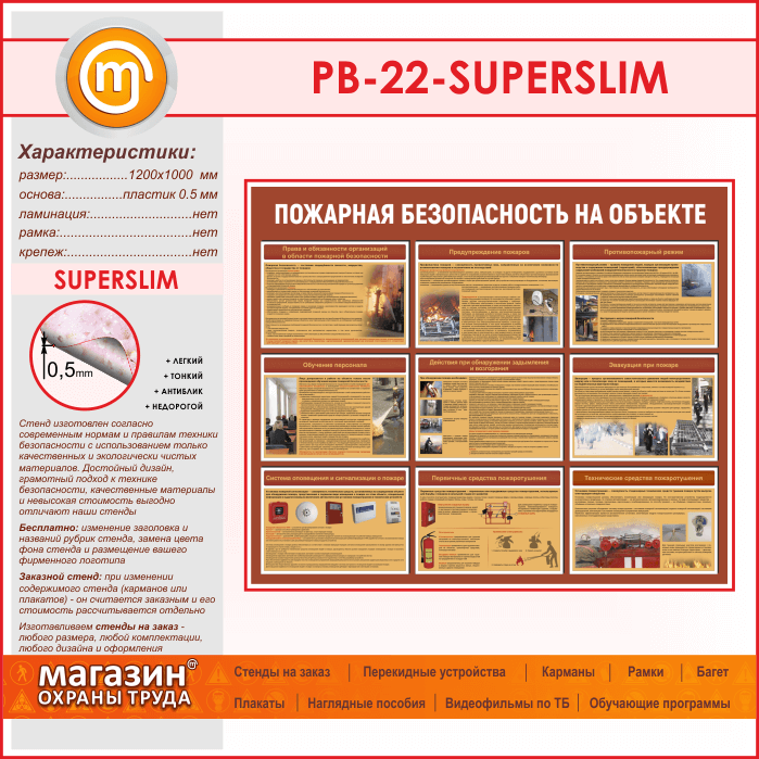 Стенд «Пожарная безопасность на объекте» (PB-22-SUPERSLIM) в Кашире купить