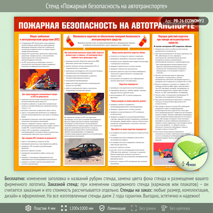 Стенд «Пожарная безопасность на автотранспорте» (PB-26-ECONOMY2) в Кашире купить