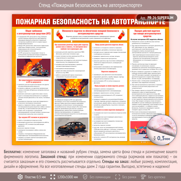 Стенд «Пожарная безопасность на автотранспорте» (PB-26-SUPERSLIM) в Кашире купить