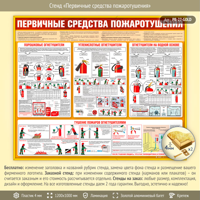 Стенд «Первичные средства пожаротушения» (PB-27-GOLD) в Кашире купить