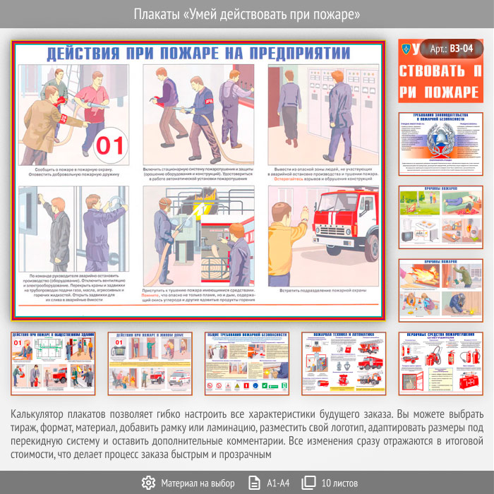 Плакаты «Умей действовать при пожаре» (ВЗ-04, 10 листов) в Кашире купить