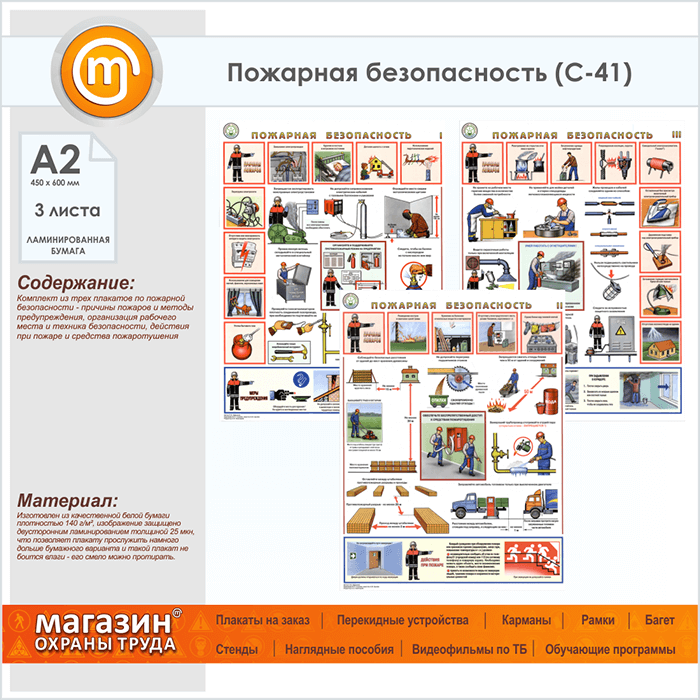 Плакаты «Пожарная безопасность» (С-41, ламинированная бумага, А2, 3 листа) в Кашире купить