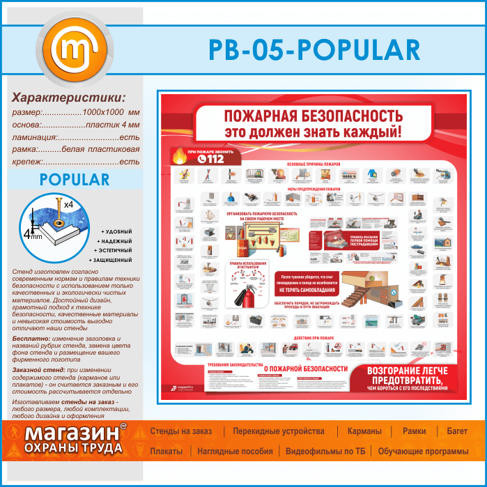 Стенд «Пожарная безопасность. Это должен знать каждый» (PB-05-POPULAR) в Кашире купить