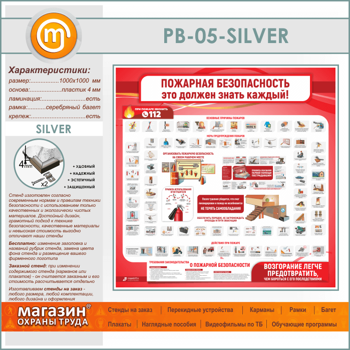 Стенд «Пожарная безопасность. Это должен знать каждый» (PB-05-SILVER) в Кашире купить