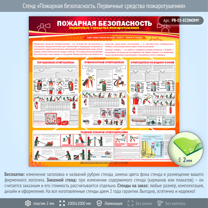 Стенд «Пожарная безопасность. Первичные средства пожаротушения» (PB-03-ECONOMY) в Кашире купить