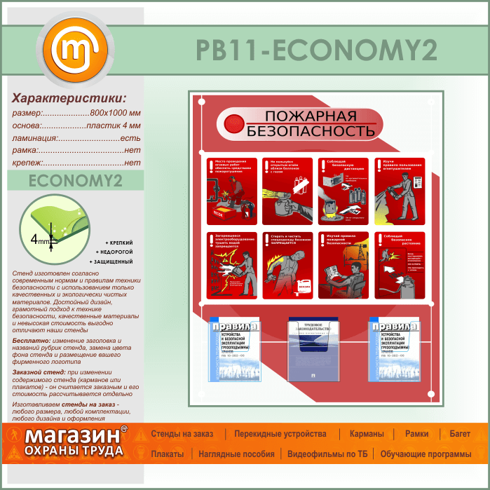 Стенд «Стенд пожарная безопасность в строительстве» с 3 объемными карманами (PB-11-ECONOMY2) в Кашире купить