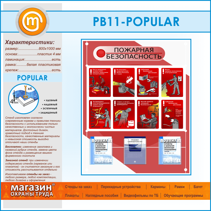 Стенд «Стенд пожарная безопасность в строительстве» с 3 объемными карманами (PB-11-POPULAR) в Кашире купить