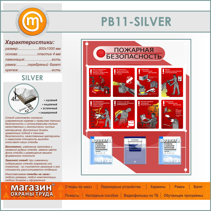Стенд «Стенд пожарная безопасность в строительстве» с 3 объемными карманами (PB-11-SILVER) в Кашире купить