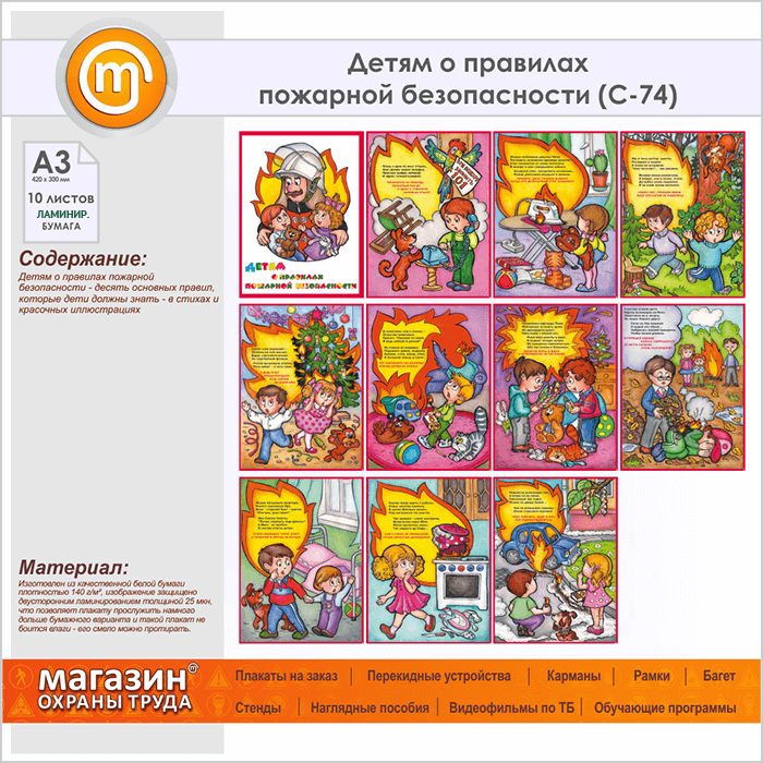 Плакаты «Детям о правилах пожарной безопасности» (С-74, ламинированная бумага, А3, 10 листов) в Кашире купить