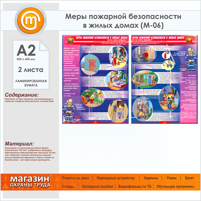 Плакаты «Меры пожарной безопасности в жилых домах» (М-06, ламинированная бумага, А2, 2 листа) в Кашире купить