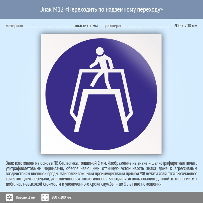 Знак M12 «Переходить по надземному переходу» (пластик, 200х200 мм) в Кашире купить