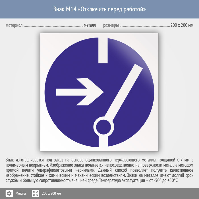 Знак M14 «Отключить перед работой» (металл, 200х200 мм) в Кашире купить