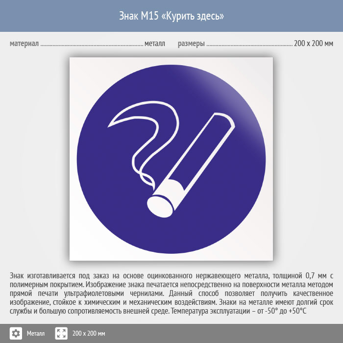 Знак M15 «Курить здесь» (исключен) (металл, 200х200 мм) в Кашире купить