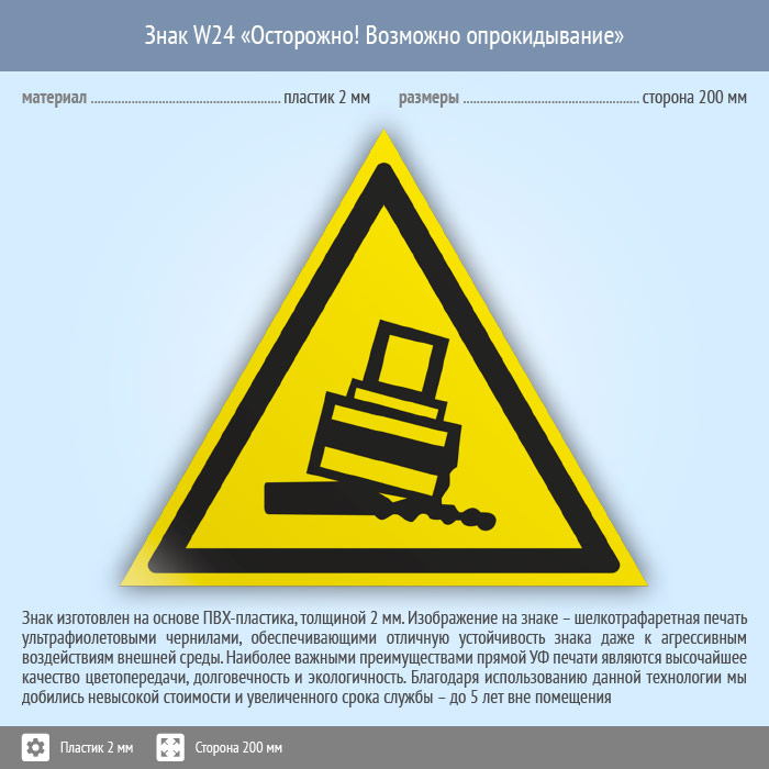 Знак W24 «Осторожно! возможно опрокидывание» (пластик, сторона 200 мм) в Кашире купить