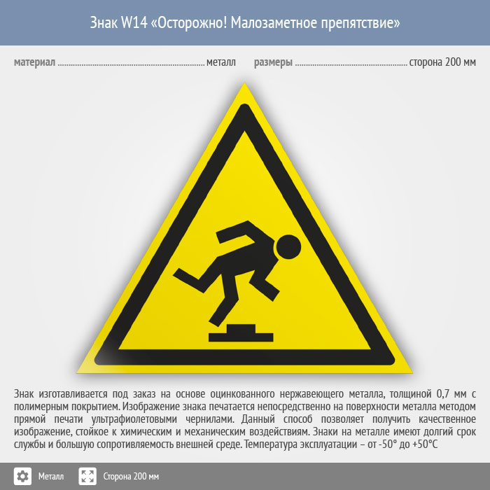 Знак W14 «Осторожно! малозаметное препятствие» (металл, сторона 200 мм) в Кашире купить