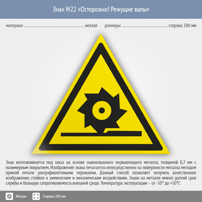 Знак W22 «Осторожно! режущие валы» (металл, сторона 200 мм) в Кашире купить