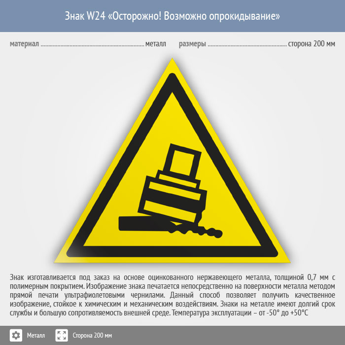 Знак W24 «Осторожно! возможно опрокидывание» (металл, сторона 200 мм) в Кашире купить