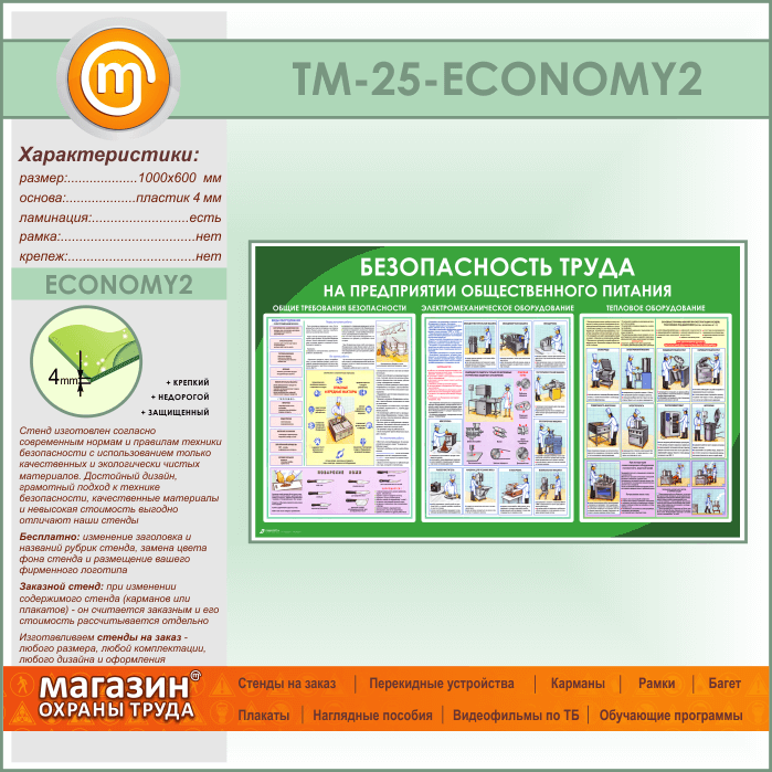 Стенд «Безопасность труда на предприятиях общественного питания» (TM-25-ECONOMY2) в Кашире купить