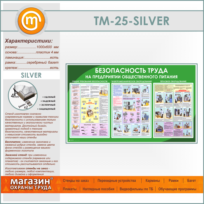 Стенд «Безопасность труда на предприятиях общественного питания» (TM-25-SILVER) в Кашире купить