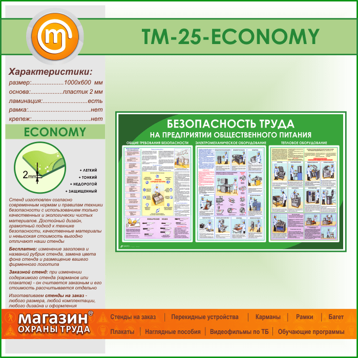 Стенд «Безопасность труда на предприятиях общественного питания» (TM-25-ECONOMY) в Кашире купить