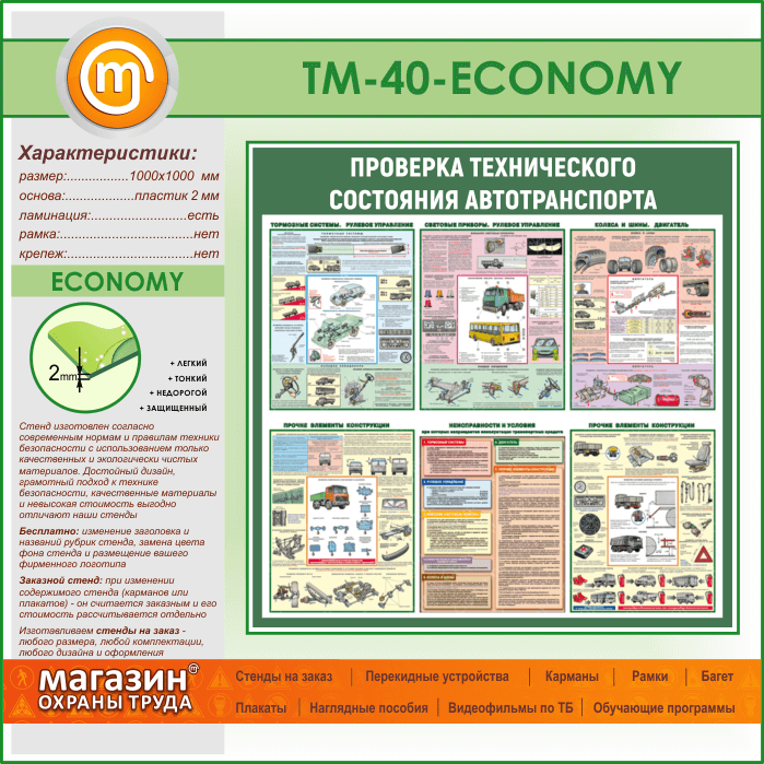 Стенд «Проверка технического состояния автотранспорта» (TM-40-ECONOMY) в Кашире купить