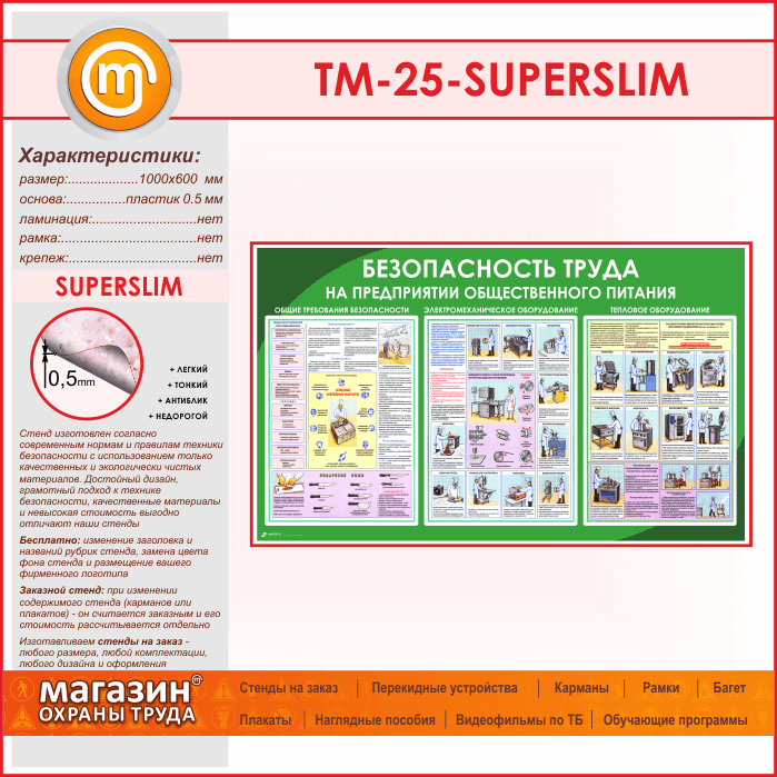 Стенд «Безопасность труда на предприятиях общественного питания» (TM-25-SUPERSLIM) в Кашире купить
