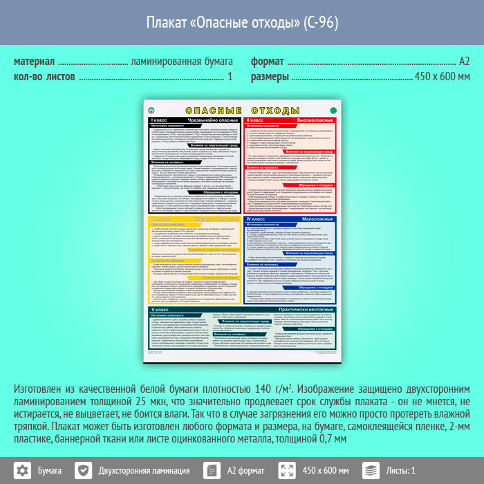 Плакат «Опасные отходы» (С-96, ламинированная бумага, А2, 1 лист) в Кашире купить