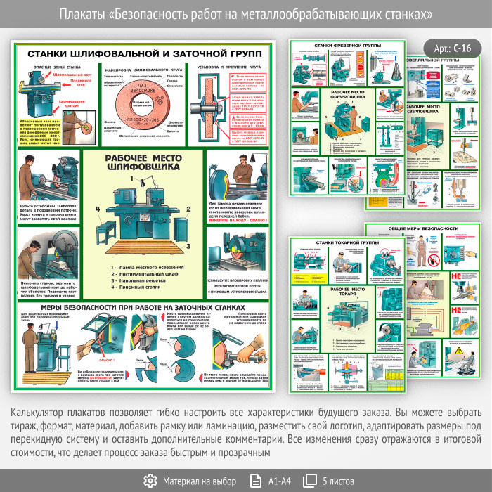 Плакат «Безопасность работ на металлообрабатывающих станках» (С-16, 5 листов) в Кашире купить