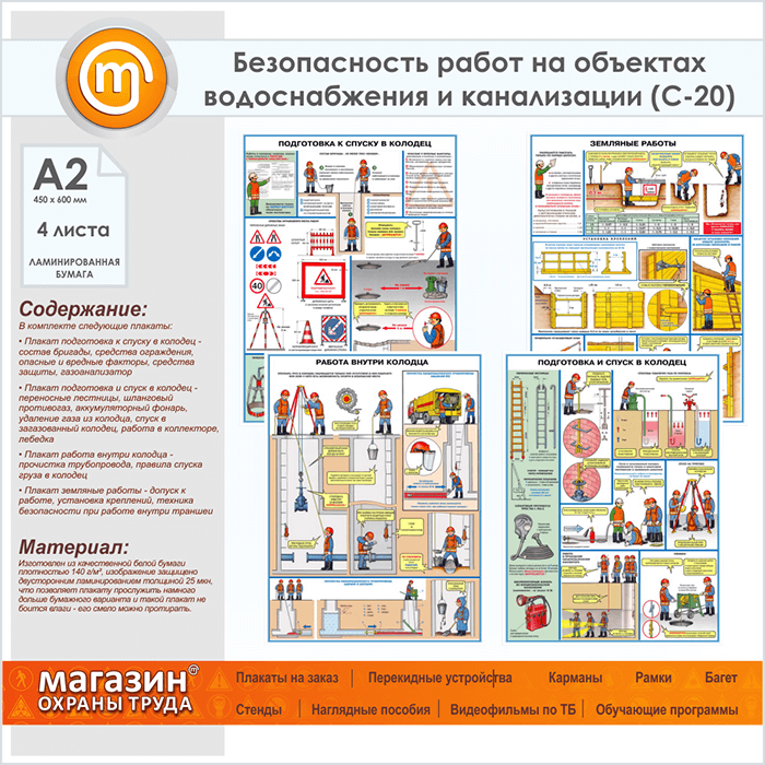 Плакаты «Безопасность работ на объектах водоснабжения и канализации» (С-20, ламинированная бумага, А2, 4 листа) в Кашире купить