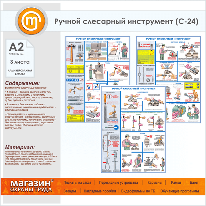 Плакаты «Ручной слесарный инструмент» (С-24, ламинированная бумага, А2, 3 листа) в Кашире купить